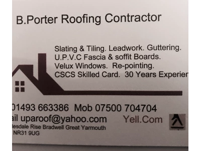 B.Porter Roofing Contractor Office tel. 01493 663386. or. mob 07500 704704