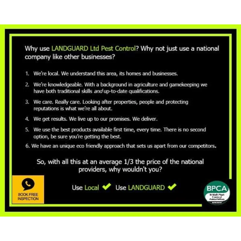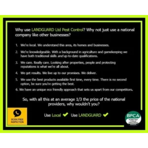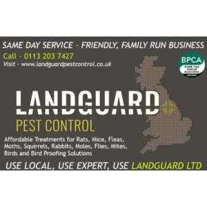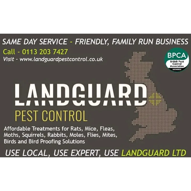 LANDGUARD Pest Control is a 5 ⭐️ rated, friendly, family-run business. Our services include Wasp Removal, Rat Control, Mouse Control, Fly control and treatments, Flea treatments, Cockroach treatments, Mole control/removal, Rabbit control/removal, Squirrel control/removal, Ant treatments, Mite treatments, Moth treatments, Textile pest treatments, Bird control/proofing and Bed Bug Detection Dog Searches. We pride ourselves on our commitment to providing professional and prompt service at all times while maintaining the highest quality of work—as a specialist in domestic, equestrian, and agricultural pest management and covering Leeds, Otley, Pool, Yeadon, Guiseley, Menston, Addingham, Ilkley, Harrogate, Pannal, Huby, North Rigton, Askwith, Spofforth, Kirby Overblow, Harewood, Moor Allerton, Collingham, Ripon, and all surrounding villages.