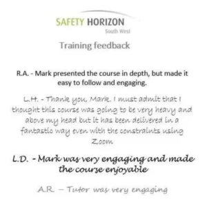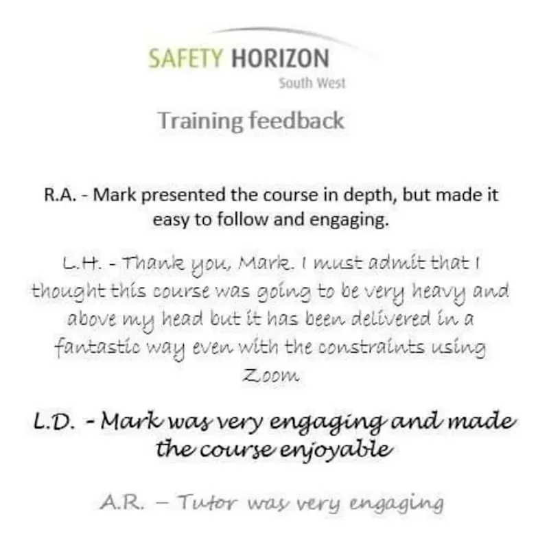Safety Horizon (South West) is one of the leading providers of Health and Safety training and consultancy services, supporting businesses throughout the South-West of England and South West Wales. With over 35 years’ experience in the health and safety sector, covering various industries, our clients trust us and know they are in safe hands.
